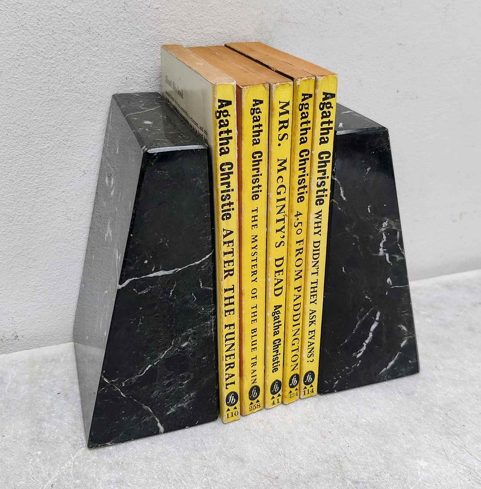Pair Of Heavy Black-Veined Marble Bookends
